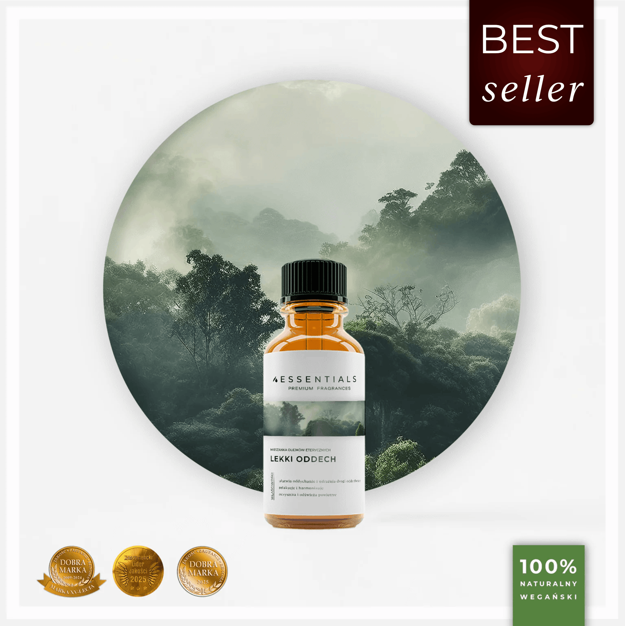 Lekki Oddech to aromaterapeutyczna mieszanka najwyższej jakości olejków eterycznych, stworzona z myślą o tych chwilach, kiedy najbardziej potrzebujesz oddychać pełną piersią. Niezależnie od tego, czy zmagasz się z katarem, napięciem psychicznym, smogiem czy po prostu codziennym stresem – ta starannie opracowana kompozycja przywraca klarowność, lekkość i harmonię w oddechu, głowie i przestrzeni wokół.